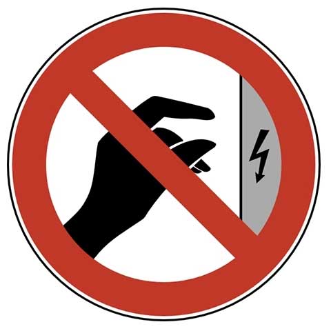 Aanraken verboden, oppervlakte onder spanning. Gebruik deze sticker om aan te geven dat het verboden is om het oppervlakte onder spanning aan te raken. (NEN ISO 7010). De sticker is geschikt voor zowel binnen- als buitengebruik. Kies bij buitengebruik de optie “beschermfolie” voor extra bescherming tegen UV straling en water (en dus een langere levensduur).