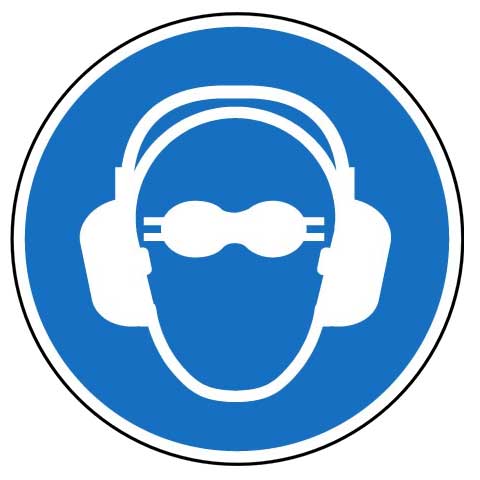Deze sticker laat door middel van het oog en gehoorbescherming verplicht symbool zien dat er sprake is van een verplichting om oorkappen en een bril te dragen. Dit pictogram kunt u bijvoorbeeld gebruiken in een werkomgeving waarin het van belang is dat men de ogen en oren goed beschermt.
