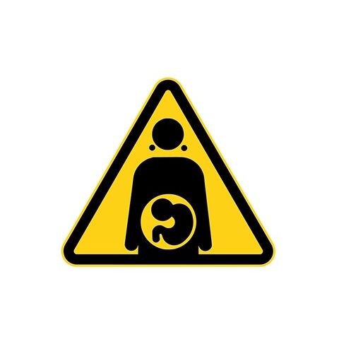 Gevaar bij zwangerschap pictogram sticker. UV bestendige kwaliteit, voor buiten geschikt. U kunt deze sticker bestellen op ieder formaat naar keuze. Met gratis verzending!