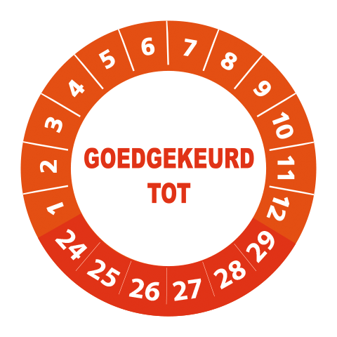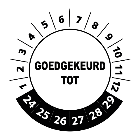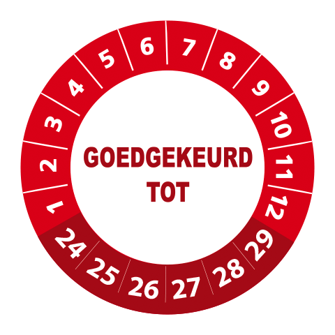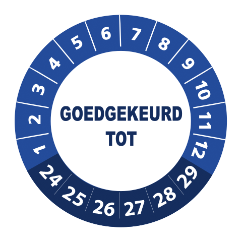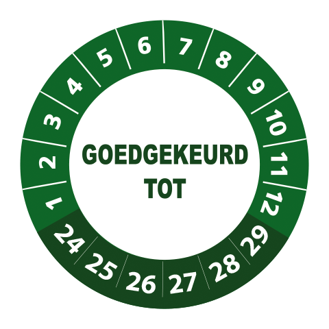 Bestel hier uw ‘goedgekeurd tot 2024’ keuringsstickers op makkelijk hanteerbare rollen. De stickers hebben een diameter van 3 cm en worden geleverd met een UV beschermlaag. Ze zijn daarom ook geschikt voor outdoor gebruik en kunnen prima tegen een stootje. Heeft u speciale wensen? Bel of mail dan gerust voor een offerte op maat!