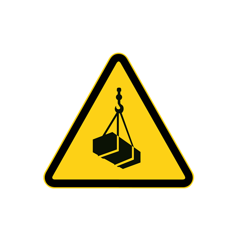 Hangende last pictogram (W015) sticker. Plaats deze pictogram op plekken waar hangende (hijs) last aanwezig is zodat mensen zich niet onder een hangende last begeven. U kunt deze UV bestendige sticker voor zowel binnen- als buitengebruik inzetten.