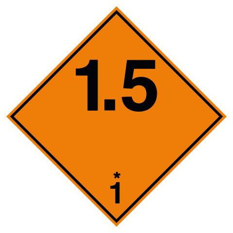 Ontplofbare stoffen en voorwerpen 1.5. Gebruik deze sticker om aan te geven dat je met ontplofbare stoffen en voorwerpen 1.5 te maken hebt. Te gebruiken op vracht en transport containers. De sticker is geschikt voor zowel binnen- als buitengebruik. Kies bij buitengebruik de optie “beschermfolie” voor extra bescherming tegen UV straling en water (en dus een langere levensduur).