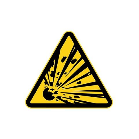 W002 ontploffingsgevaar pictogram. Gebruik deze sticker om aan te geven dat er ontploffingsgevaar is. Te gebruiken om personen te waarschuwen voor ontploffingsgevaar. (NEN ISO 7010). De sticker is geschikt voor zowel binnen- als buitengebruik. Kies bij buitengebruik de optie “beschermfolie” voor extra bescherming tegen UV straling en water (en dus een langere levensduur).