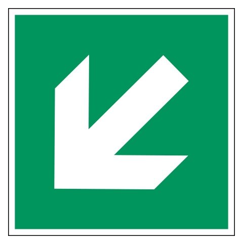 Pijl omlaag links pictogram. Gebruik deze sticker om aan te geven dat je bij een evacuatie naar linksonder moet. De sticker is geschikt voor zowel binnen- als buitengebruik. Kies bij buitengebruik de optie “beschermfolie” voor extra bescherming tegen UV straling en water (en dus een langere levensduur).