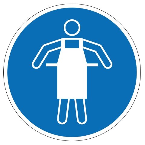 M026 short verplicht. Gebruik deze sticker om aan te geven dat het dragen van een schort verplicht is. (NEN ISO 7010). De sticker is geschikt voor zowel binnen- als buitengebruik. Kies bij buitengebruik de optie “beschermfolie” voor extra bescherming tegen UV straling en water (en dus een langere levensduur).