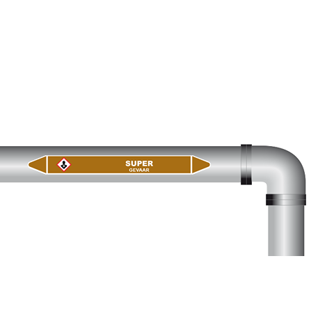 Leidingmarkering voor super. Gebruik deze sticker om aan te geven welke leiding als super gemarkeerd moet worden. Te gebruiken in ruimtes met ontvlambare vloeistoffen leidingen, bijvoorbeeld een raffinaderij en olieplatformen. De sticker is geschikt voor zowel binnen- als buitengebruik. Kies bij buitengebruik de optie “beschermfolie” voor extra bescherming tegen UV straling en water (en dus een langere levensduur).