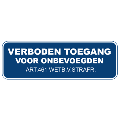 Verboden toegang voor onbevoegden. Gebruik deze sticker om duidelijk te maken dat het verboden is om je op dit terrein te bevinden. De sticker is geschikt voor zowel binnen- als buitengebruik. Kies bij buitengebruik de optie “beschermfolie” voor extra bescherming tegen UV straling en water (en dus een langere levensduur).