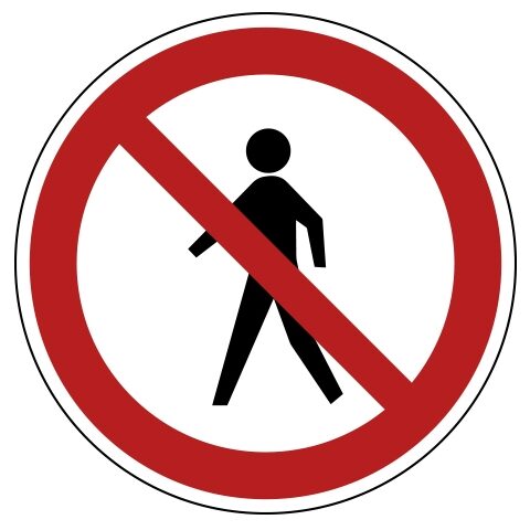 Verboden voor voetgangers. Gebruik deze sticker om aan te geven dat het verboden is voor voetgangers. Bijvoorbeeld op snelwegen en autowegen. De sticker is geschikt voor zowel binnen- als buitengebruik. Kies bij buitengebruik de optie “beschermfolie” voor extra bescherming tegen UV straling en water (en dus een langere levensduur).