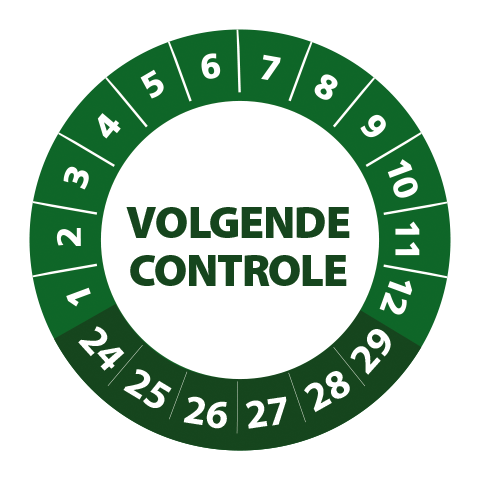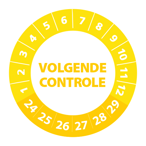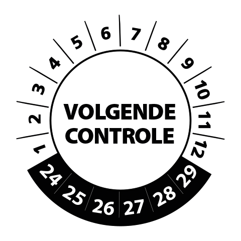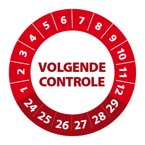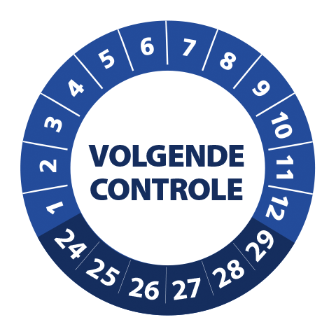 Bestel hier uw ‘volgende controle 2024’ keuringsstickers op makkelijk hanteerbare rollen. Deze blauwe stickers hebben een diameter van 3 cm en worden geleverd met een UV beschermlaag. Ze zijn daarom ook geschikt voor outdoor gebruik en kunnen prima tegen een stootje. Heeft u speciale wensen? Bel of mail dan gerust voor een offerte op maat!
